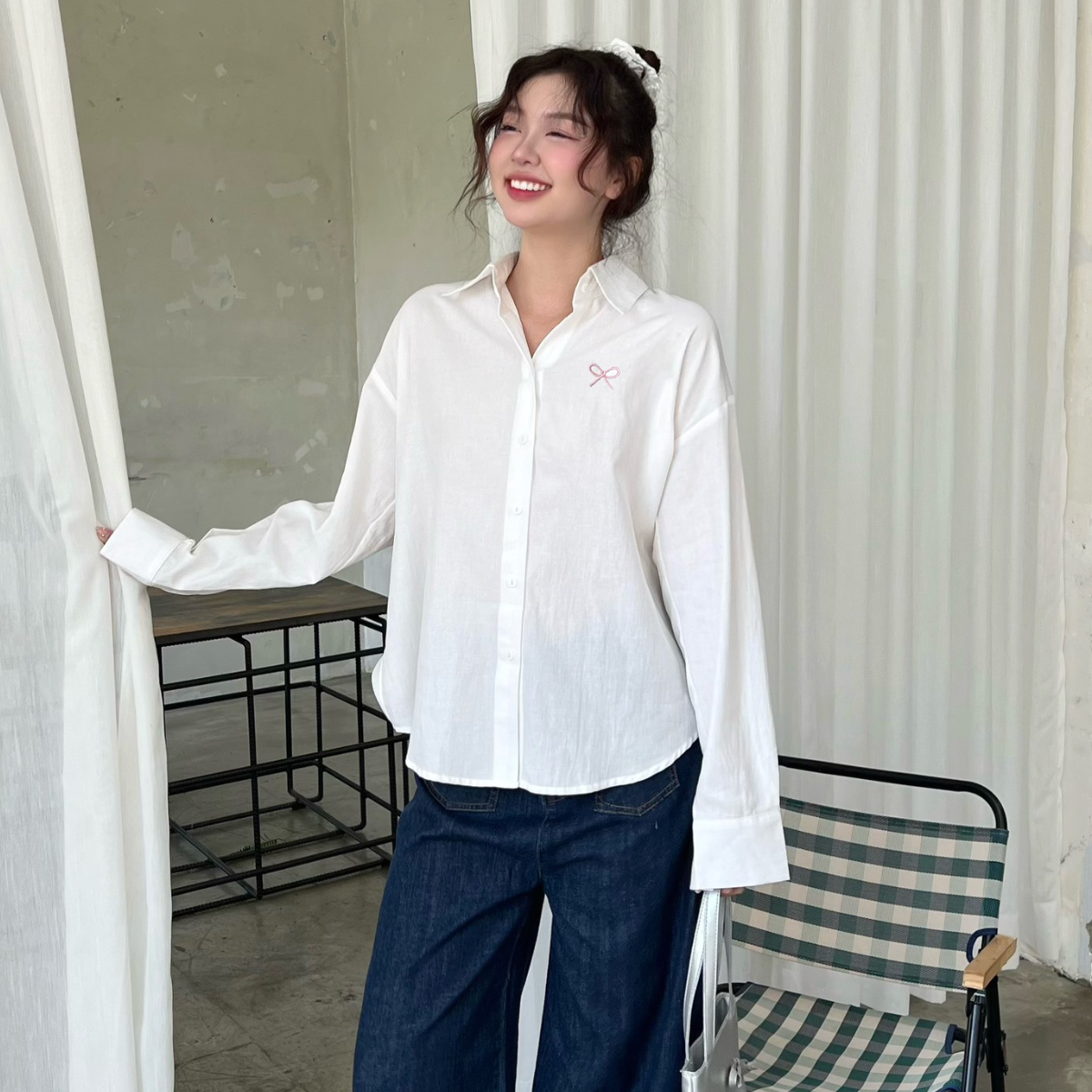 ✨Áo sơ mi nữ thêu nơ trẻ trung nữ tính thích hợp đi làm đi chơi Bow Miều Est.2013