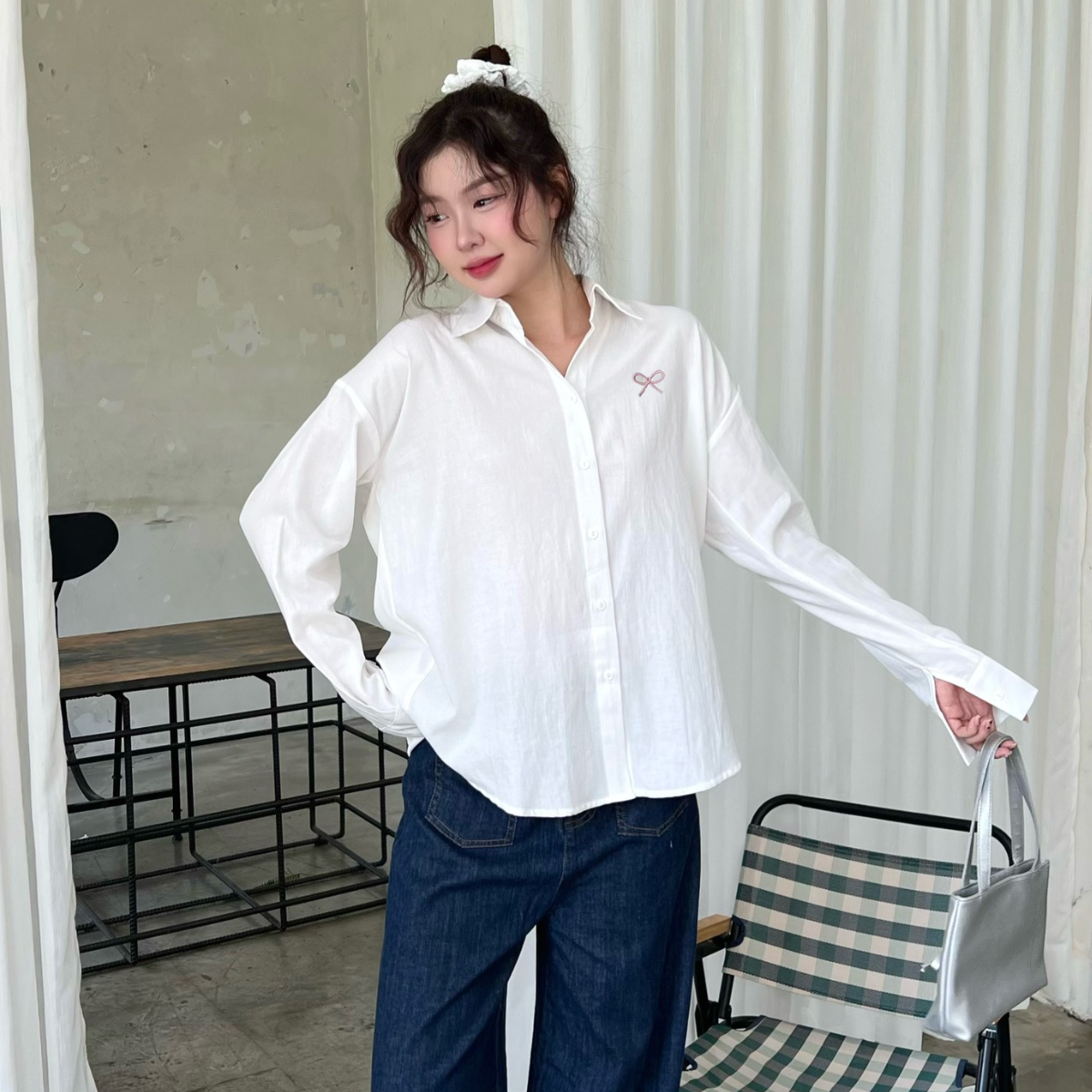 - Sản phẩm : Áo sơ mi nữ thêu nơ trẻ trung nữ tính thích hợp đi làm đi chơi Bow Miều Est.2013