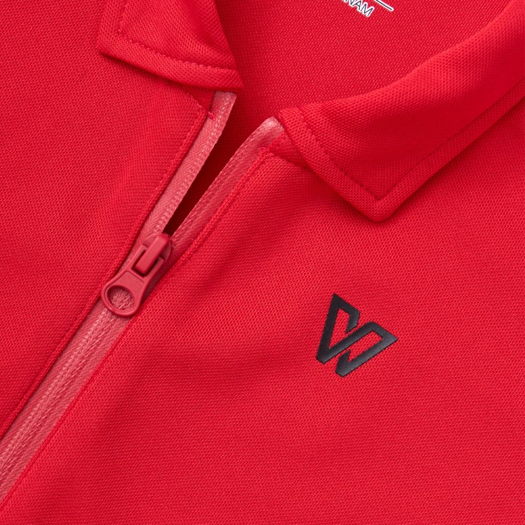 Bộ trang phục thể thao mang phong cách đơn giản với form áo blouson truyền thống, kết hợp cùng dáng quần baggy phù hợp với mọi chuyển động. Điểm nhấn của trang phục là hình