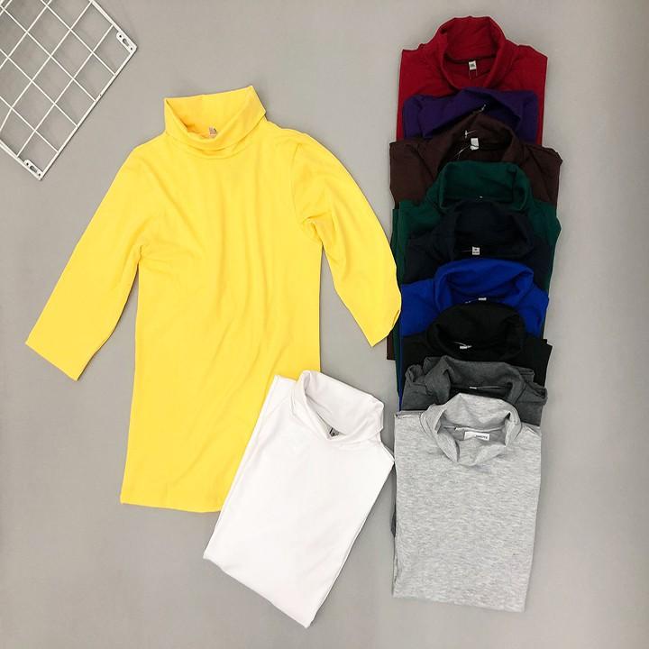 Áo Thun Tay Dài Cổ Lọ Dáng Dài Chất Thun Gân Cotton, Áo Cổ Lọ Dài Tay Dáng Ôm Giữ Nhiệt Nữ