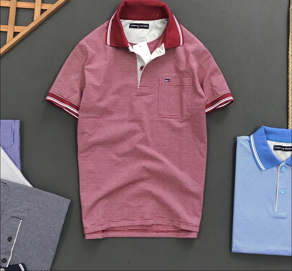 Áo thun nam trung niên sọc ngang có túi có cổ mã TL