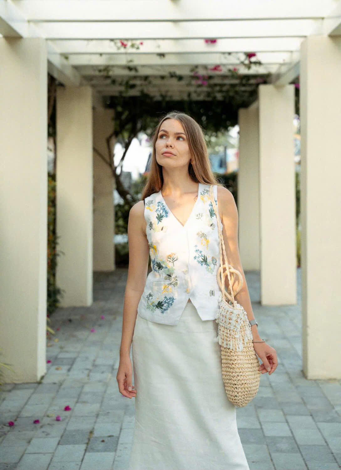 Chào đón "ngôi sao" mới gia nhập Bộ sưu tập thêu tay "Mơ" danh tiếng của Hity – Áo Vest Linen Thêu Tay Mơ, một thiết kế mang trọn vẹn hơi thở phóng khoáng và vẻ đẹp rực rỡ của miền nhiệt đới.