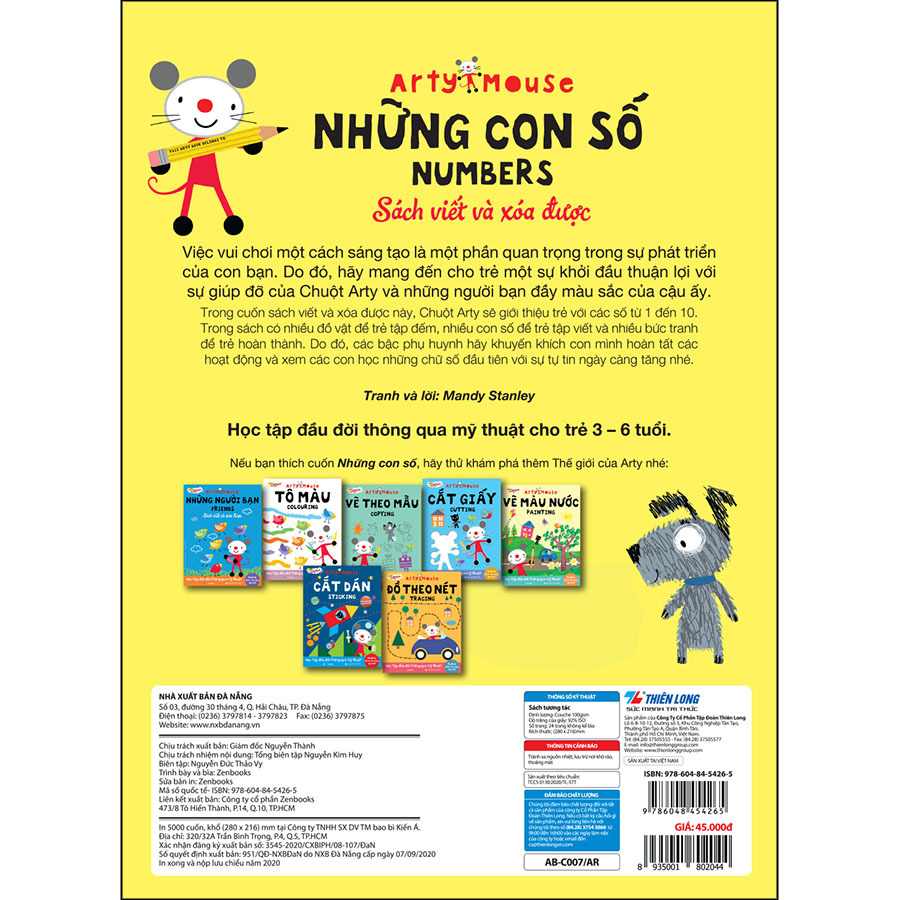 Trong cuốn sách viết và xóa được này, Chuột Arty sẽ giới thiệu các số từ 1 đến 10 để giúp con bạn có thể học được những con số đầu tiên với một sự tự tin ngày càng tăng lên.