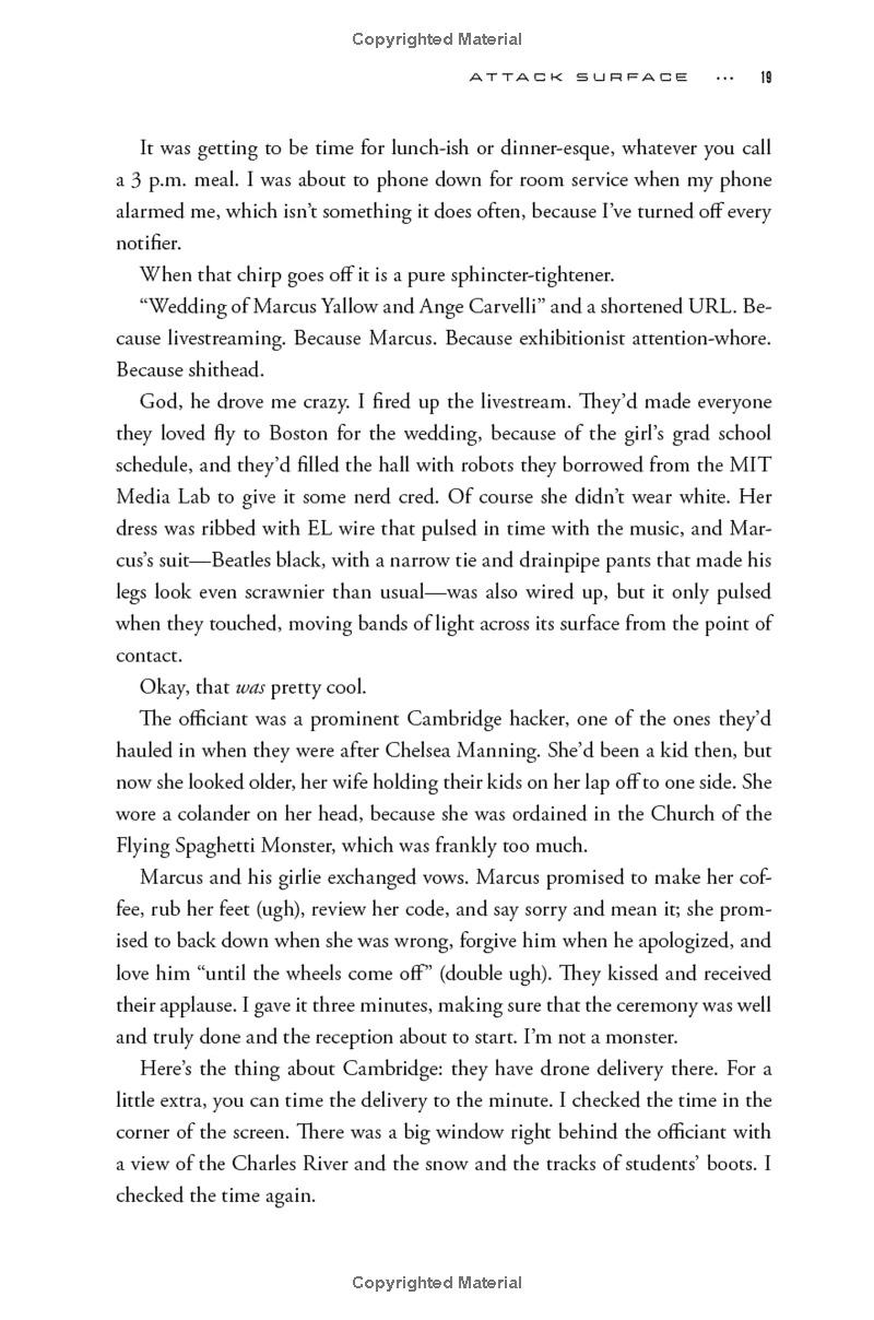 Attack Surface takes us five minutes into the future, to a world where everything is connected and everyone is vulnerable.