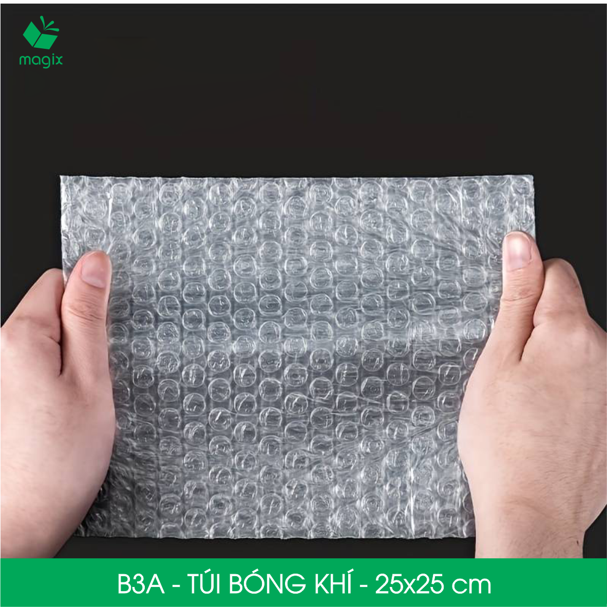 ĐẶC ĐIỂM SẢN PHẨM Túi khí đóng gói là mặt hàng đóng gói nhẹ, chắc chắn - mang lại sự đảm bảo về lớp đệm đáng tin cậy và giảm chi phí vận chuyển Cố định và bảo vệ đồ dễ vỡ khỏi bị sốc, rung và KHÔNG TRUYỀN LỰC trong túi bong bóng Tiện lợi, sử dụng đơn giản - dạng túi hơi, tiện dụng, chỉ cần bỏ sản phẩm vào túi và quấn lại mà không cần phải cắt giúp tiết kiệm thời gian Bền dẻo, chống thấm nước - cuộn bóng khí được làm bằng nhựa nguyên sinh với độ dẻo tuyệt vời, không dễ bị rách, thủng và bảo vệ vật khô ráo từ môi trường ướt bên ngoài Đa dạng kích thước, phù hợp nhu cầu đóng gói cụ thể ️ Lưu ý: Sản phẩm dễ cháy, tránh lửa CÔNG DỤNG Bảo vệ các vật dụng, đồ vật đựng chất lỏng dễ vỡ: • Bát đĩa, đồ sưu tầm, thủy tinh • Mỹ phẩm, nước hoa, son • Thiết bị điện tử và các thiết bị nhỏ QUY CÁCH KỸ THUẬT Chất liệu: Nhựa nguyên sinh Màu sắc: Trong suốt Hình dáng thiết kế: Túi 1 đầu hở Mã sản phẩm - Kích thước (phủ bì): • B1 - 15x10 cm • B2 - 20x15 cm • B3 - 30x20 cm • B3A - 25x25 cm • B3B - 40x30 cm ĐẶC ĐIỂM SẢN PHẨM Túi khí đóng gói là mặt hàng đóng gói nhẹ, chắc chắn - mang lại sự đảm bảo về lớp đệm đáng tin cậy và giảm chi phí vận chuyển Cố định và bảo vệ đồ dễ vỡ khỏi bị sốc, rung và KHÔNG TRUYỀN LỰC trong túi bong bóng Tiện lợi, sử dụng đơn giản - dạng túi hơi, tiện dụng, chỉ cần bỏ sản phẩm vào túi và quấn lại mà không cần phải cắt giúp tiết kiệm thời gian Bền dẻo, chống thấm nước - cuộn bóng khí được làm bằng nhựa nguyên sinh với độ dẻo tuyệt vời, không dễ bị rách, thủng và bảo vệ vật khô ráo từ môi trường ướt bên ngoài Đa dạng kích thước, phù hợp nhu cầu đóng gói cụ thể ️ Lưu ý: Sản phẩm dễ cháy, tránh lửa CÔNG DỤNG Bảo vệ các vật dụng, đồ vật đựng chất lỏng dễ vỡ: • Bát đĩa, đồ sưu tầm, thủy tinh • Mỹ phẩm, nước hoa, son • Thiết bị điện tử và các thiết bị nhỏ QUY CÁCH KỸ THUẬT Chất liệu: Nhựa nguyên sinh Màu sắc: Trong suốt Hình dáng thiết kế: Túi 1 đầu hở Mã sản phẩm - Kích thước (phủ bì): • B1 - 15x10 cm • B2 - 20x15 cm • B3 - 30x20 cm • B3A - 25x25 cm • B3B - 40x30 cm