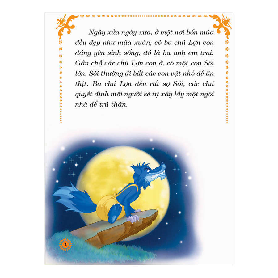 • "Ngày xửa ngày xưa, ở một nơi bốn mùa đều đẹp như mùa xuân, có ba chú Lợn con đáng yêu sinh sống, đó là ba anh em trai. Gần chỗ các chú Lợn con ở, có một con Sói lớn. Sói thường đi bắt các con vật nhỏ để ăn thịt. Ba chú Lợn đều rất sợ Sói, các chú quyết định mỗi người sẽ tự xây lấy một ngôi nhà để trú thân." Ưu điểm