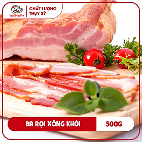 Ba rọi xông khói cắt lát 500g là sản phẩm được sản xuất từ những khối thịt ba rọi heo tươi ngon, được chọn lọc kỹ, lọc bỏ da, ướp thấm gia vị và xông khói bằng gỗ sồi tự nhiên nhập khẩu từ châu Âu. Ba rọi xông khói là món ăn thơm ngon, tiện lợi, cung cấp nhiều chất dinh dưỡng và là nguyên liệu để chế biến nhiều món ăn hấp dẫn khác nhau.