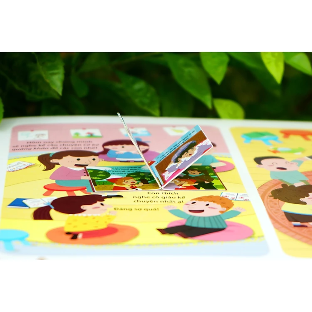 Bách khoa kỹ năng sống đa tương tác - Những hoạt động ở trường mẫu giáo giúp con vui vẻ đến lớp là cuốn sách Lật mở - Chuyển động có nội dung vô cùng