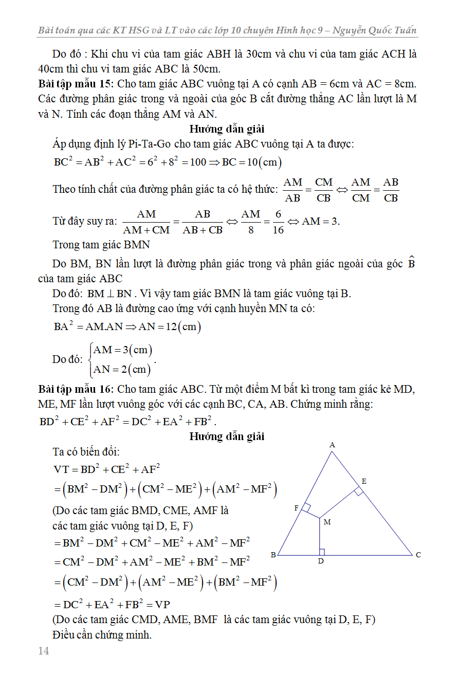 Bài Toán Qua Các Kì Thi Học Sinh Giỏi Và Luyện Thi Vào Lớp 10 Chuyên Hình Học 9