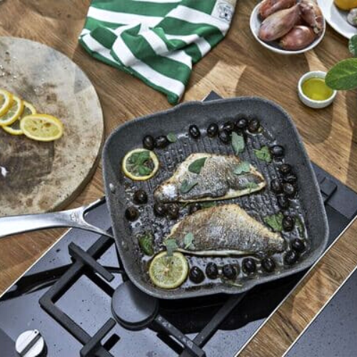 Chảo vuông nướng nhôm chống dính Salina Granitium sản phẩm của thương hiệu Ballarini đến từ Ý.