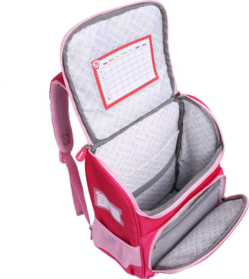 Bé dễ dàng kiểm soát thời gian và nhận ra balo của mình nhờ tích hợp thời khóa biểu bên trong và bảng tên bên ngoài.