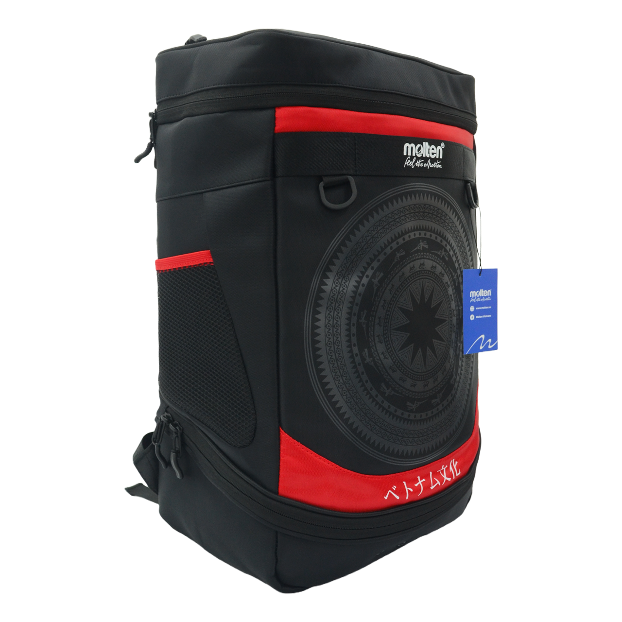 Mua tại TiktokBalo Thể thao 35L Molten Đỏ Chất liệu: 100% Polyester tráng chống nước 2 mặt Dung tích: 35l Kích thước: 32 x 19 x 50cm (rộng x dài x cao) Dây đeo vai điều chỉnh độ dài Phiên bản Văn hoá Việt Nam Cấu tạo: 6 ngăn