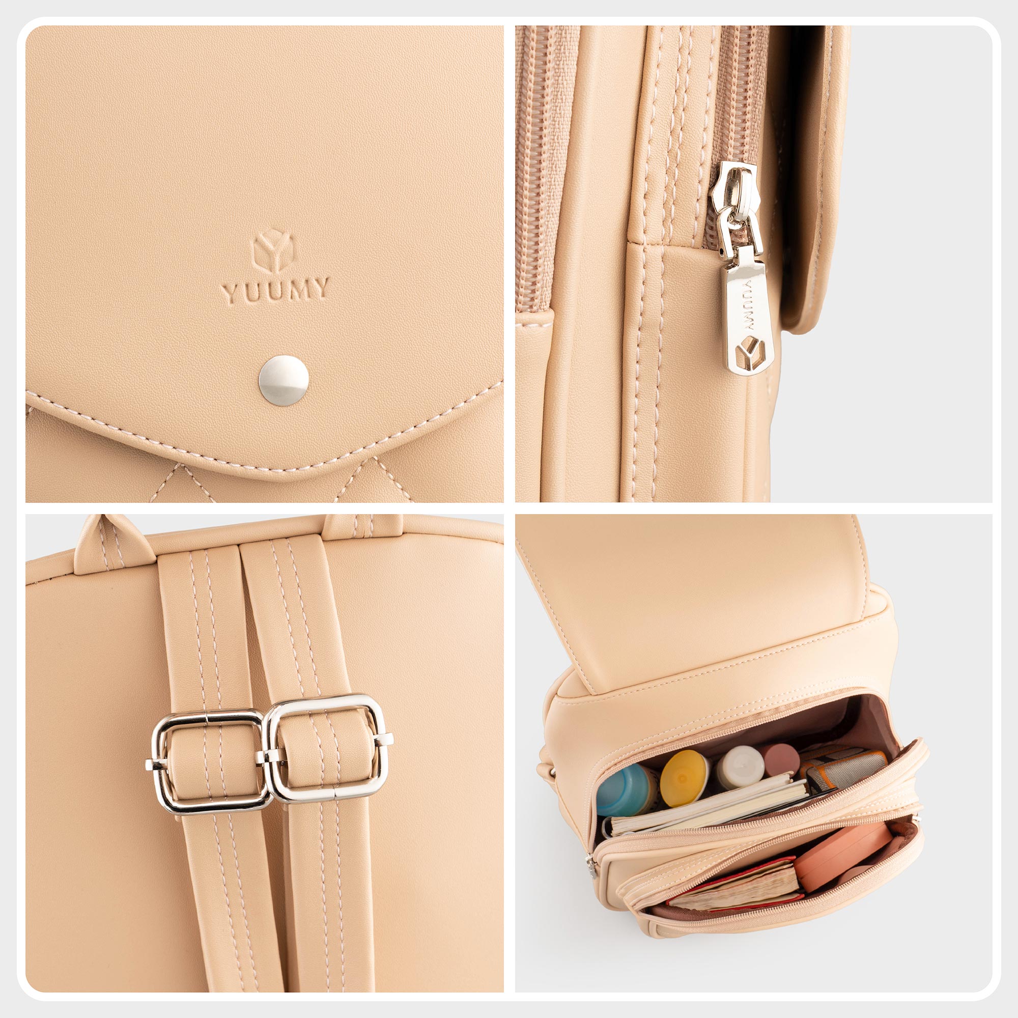 Balo da nữ Yuumy Seasand YBA99 với tone màu cơ bản theo phong cách basic giúp bạn dễ dàng phối hợp với nhiều kiểu trang phục khác nhau. Chiếc balo có kiểu dáng nhỏ gọn,