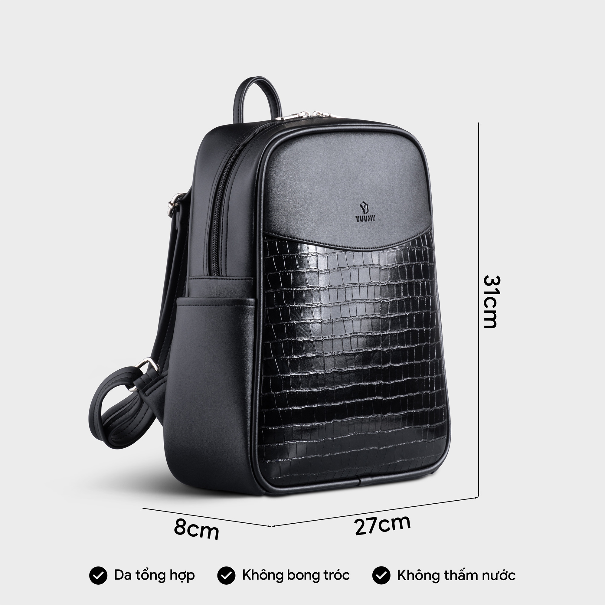 Mua tại TiktokTHÔNG TIN CHI TIẾT CỦA SẢN PHẨM : Kích thước (Dài x Rộng x Cao) : 26 x 14 x 31 cm. Màu sắc : Đen Chất liệu : Da PU cao cấp chống thấm