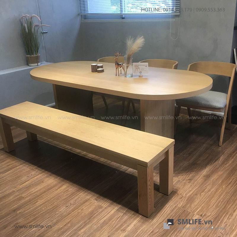 được làm từ gỗ sồi sang trọng và hiện đại, thiết kế đơn giản theo phong cách Âu - Mỹ. Bàn ăn đạt tiêu chuẩn xuất khẩu vào thị trường Mỹ