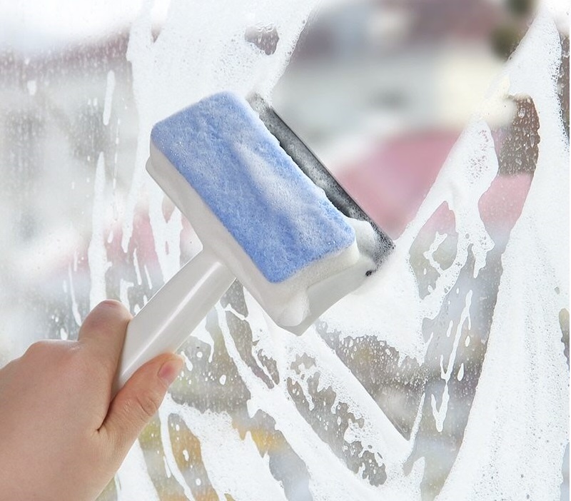 Sử dụng cần gạt bằng cao su tổng hợp để loại bỏ nhanh các giọt nước bám dính trên bề mặt cửa kính hay tường, gạch