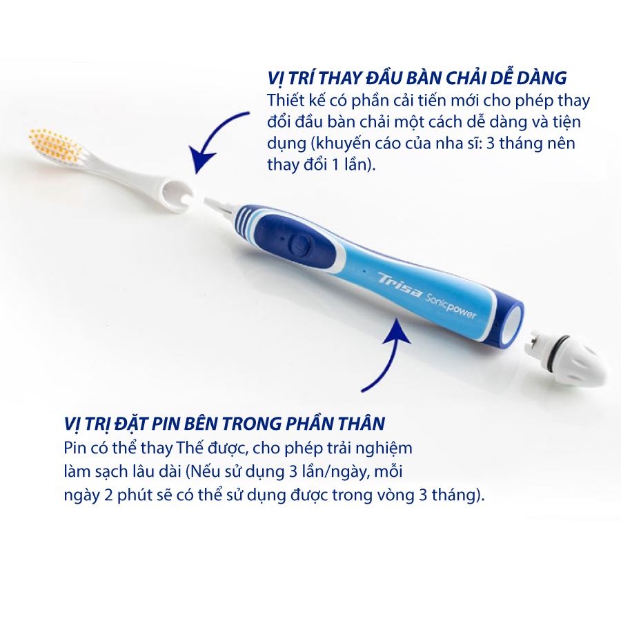 • Thay đầu bàn chải cũng thật dễ dàng, chỉ cần bạn kéo đầu bàn chải cũ ra và lấp vào đấy đầu bàn chải mới là xong rồi nè. Thế là chúng ta lại có ngay một bàn chải đánh răng mới thật tuyệt vời rồi.