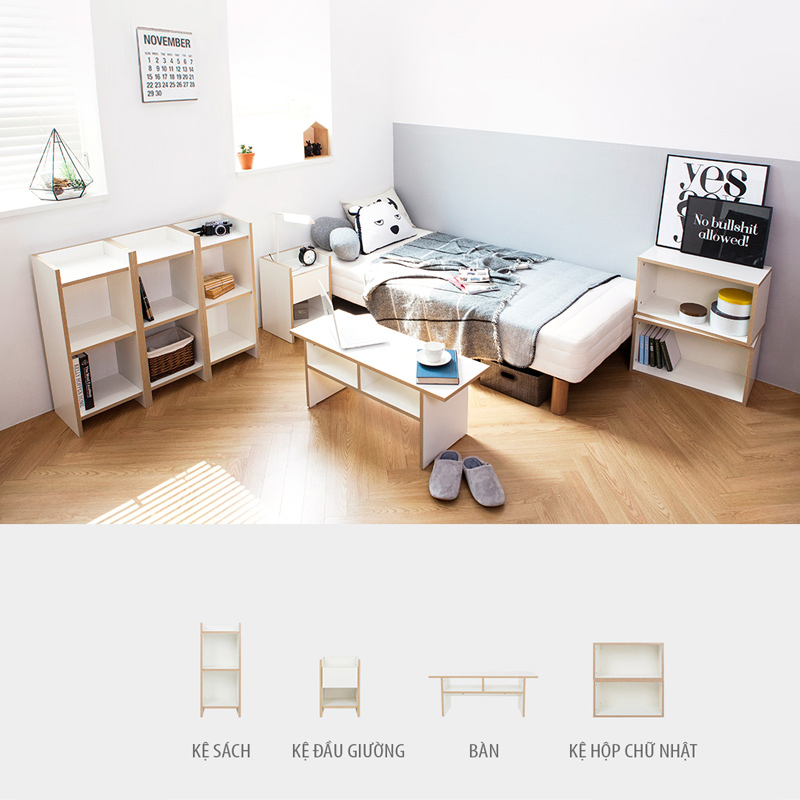 - Chất liệu: MDF bề mặt phủ Melamine kháng nước, bền màu, sử dụng lâu dài.