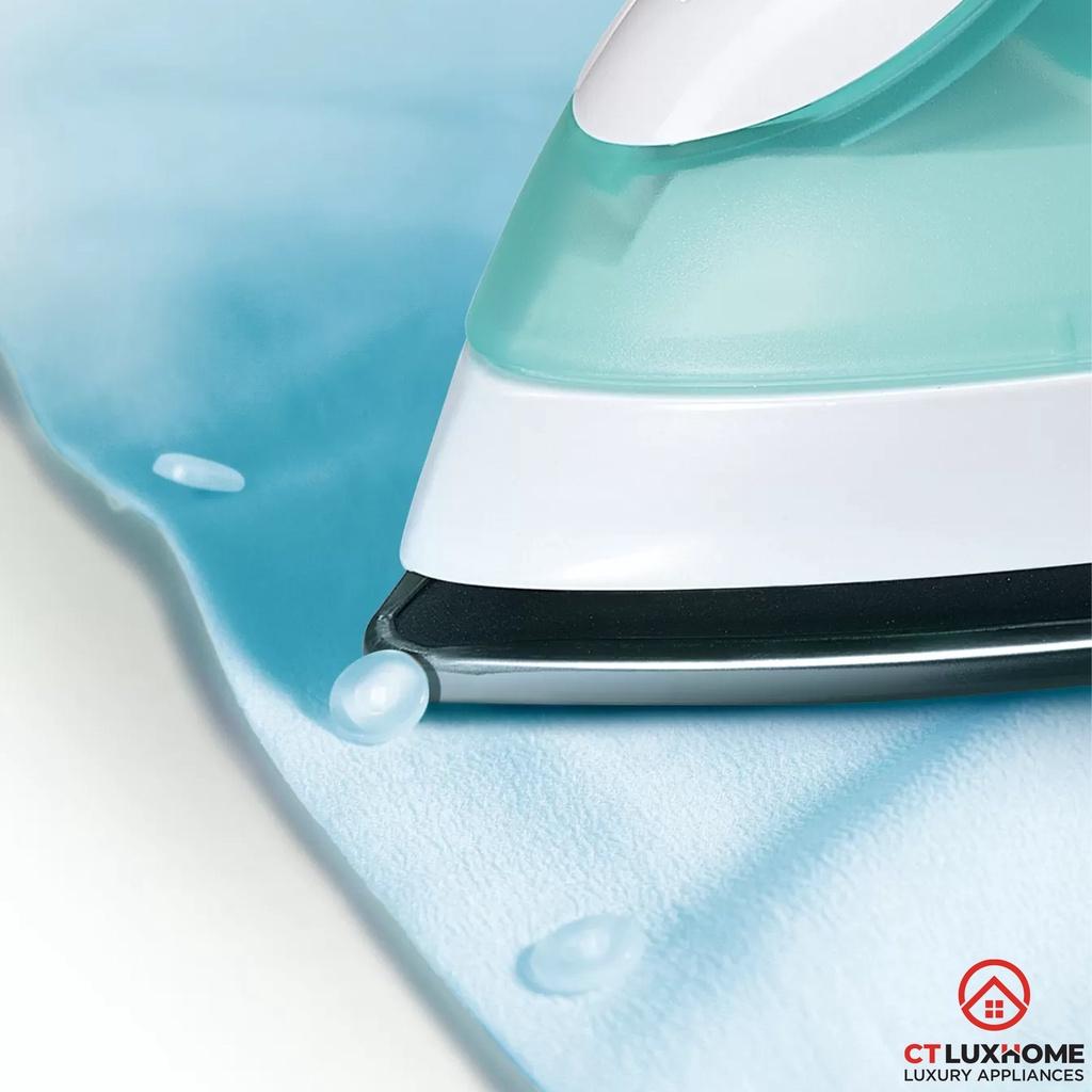 Màu sắc thời trang có màu tím thanh lịch, mặt đế bàn ủi phủ Titanium chống dính dày bền. Bàn ủi lướt êm ái trên mọi chất liệu vải, dễ làm sạch. Rãnh cúc và