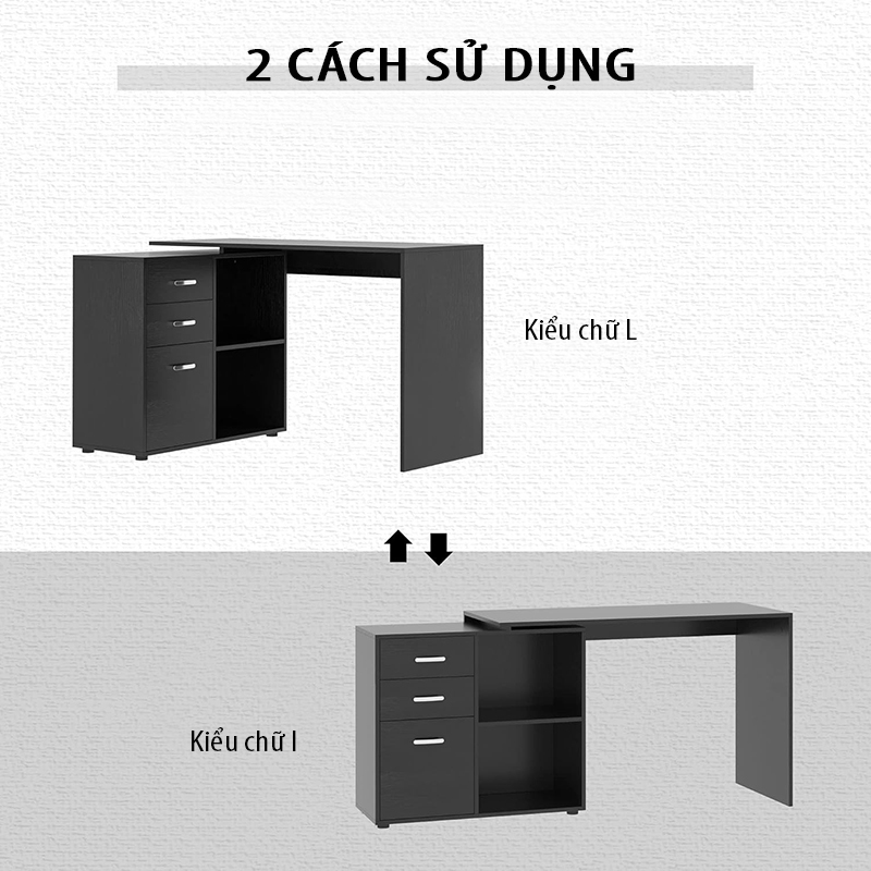 • Bộ bàn và tủ linh hoạt xếp theo không gian phòng bạn, có thể xếp theo chữ L hoặc chữ I.