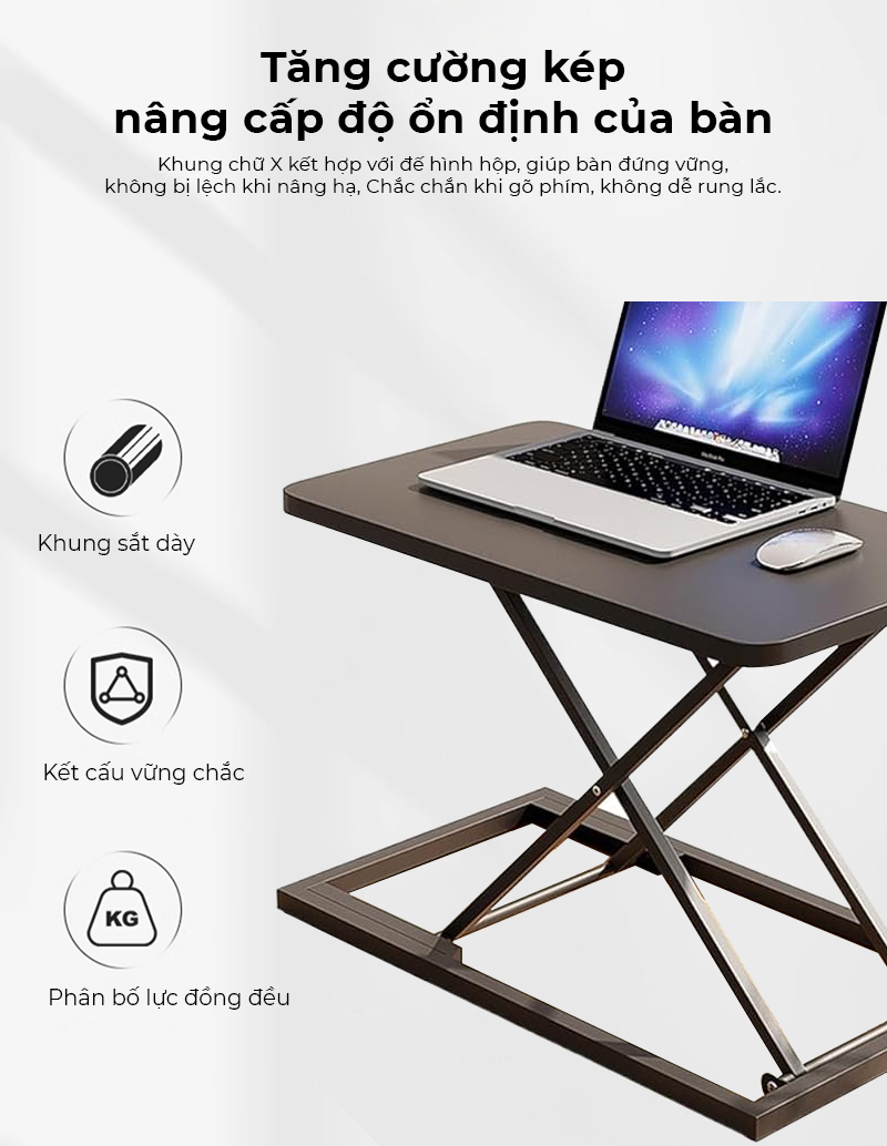 - Công năng: Mẫu bàn nâng hạ tiện lợi dùng trong văn phòng, những người cần thay đổi tư thế do làm việc 1 tư thế quá lâu,..