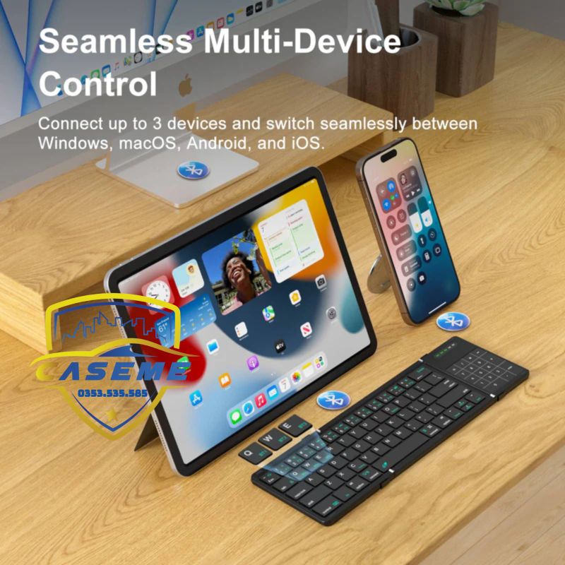 Bàn Phím Gập Bluetooth Có Touchpad & Phím Số – Chất Liệu Da Cao Cấp, Gập 180°, Nhẹ Như iPhone – Hỗ Trợ iOS/Android/Win/Mac TÓM TẮT NỔI BẬT - Gập gọn 180° – chỉ nhỏ