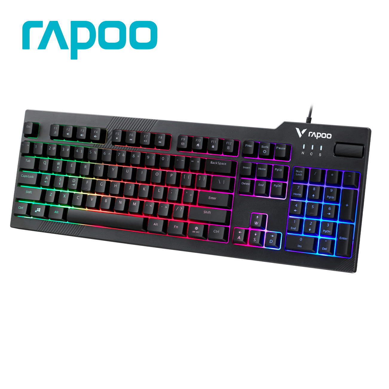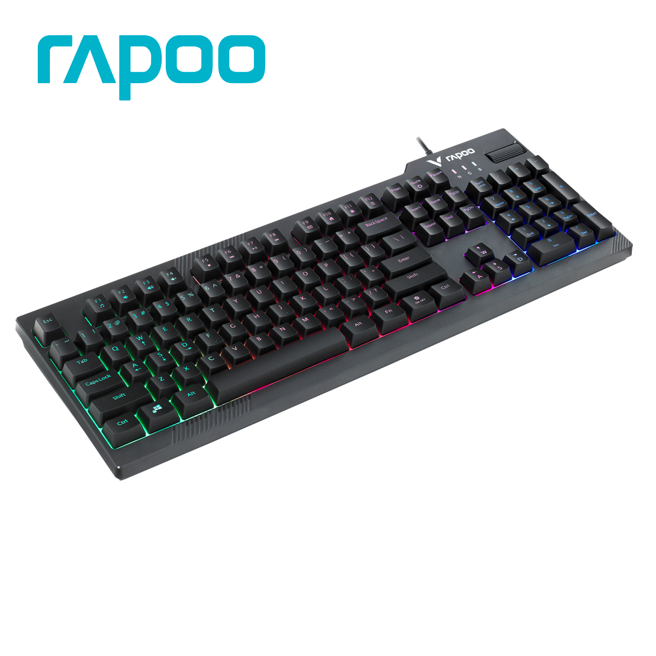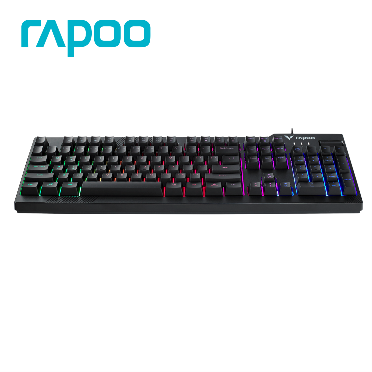 Thương hiệu: RAPOO Mã sản phẩm: V50S Bàn phím Gaming Kết nối: Dây cắm (dây dài 1.45m) Đèn LED nền 7 màu Số phím: 104 phím