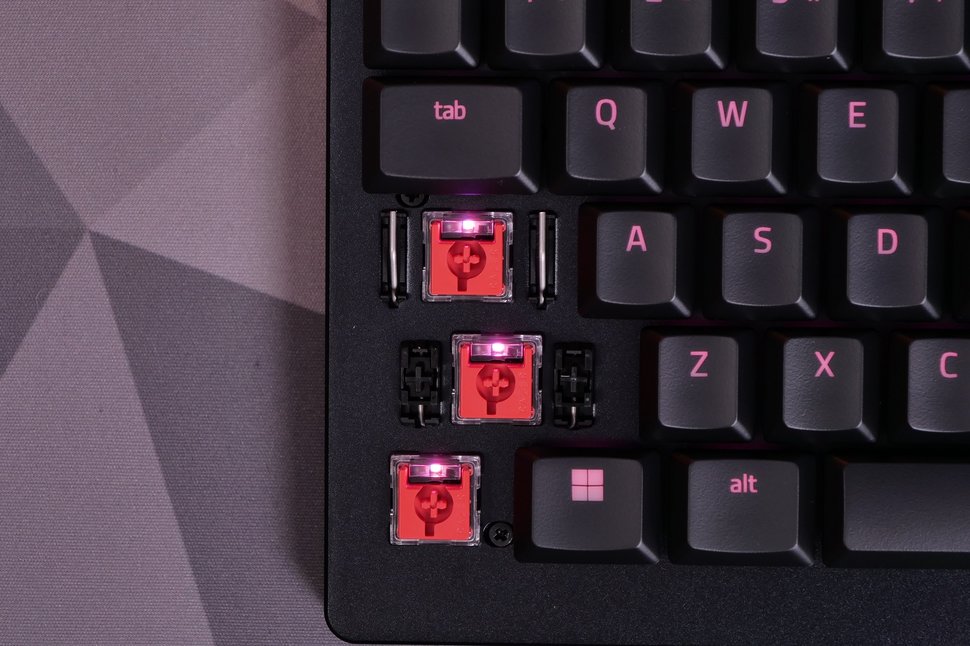 Các Switch cơ Razer (Clicky hoặc Linear) cho khả năng thực thi chính xác và nhanh Ánh sáng trên mỗi phím và underglow 2 bên được trang bị hệ thống chiếu sáng Razer Chroma RGB
