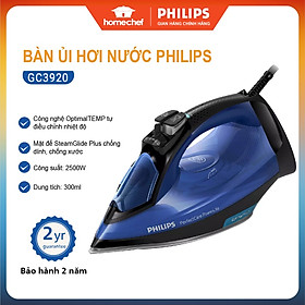 Bàn ủi hơi nước Philips GC3920 – Ủi nhanh, an toàn, không lo cháy xém Nổi bật với công nghệ OptimalTEMP: Tự động điều chỉnh nhiệt độ, an toàn cho mọi loại vải từ jean