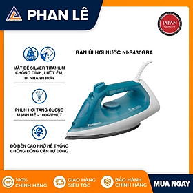 Bàn ủi hơi nước Panasonic NI-S430GRA 2300W thiết kế gọn gàng, mặt đế Silver Titan chống dính độ bền cao, dễ làm sạch, ủi đồ nhanh chóng với công suất lớn, dung tích bình chứa 300 ml ủi được nhiều bộ quần áo, sử dụng bền bỉ, an toàn với hệ thống chống đóng cặn, chống nhỏ giọt.