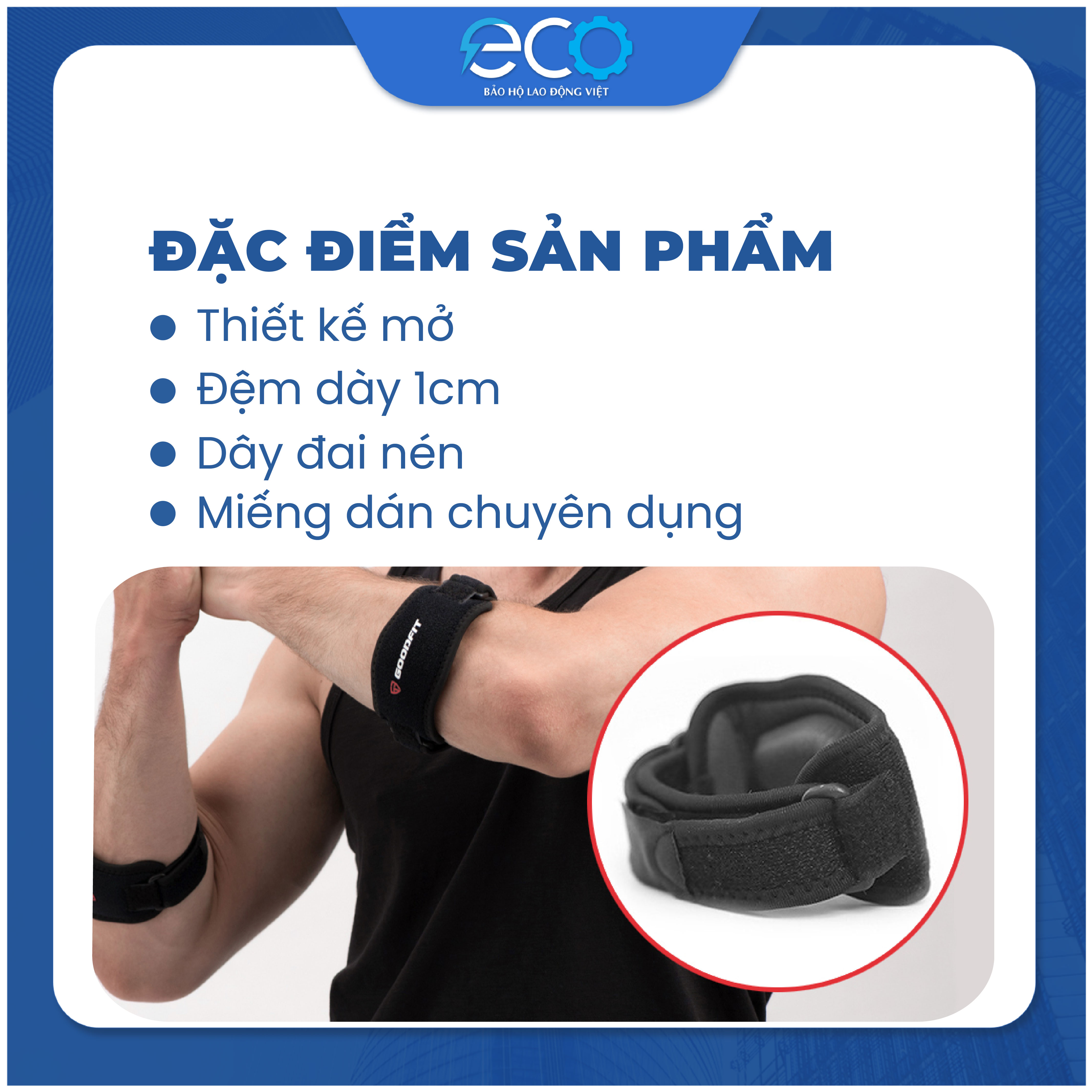 - Thay vì băng đeo dạng quấn toàn bộ vùng khuỷu tay, thì băng của GOODFIT được thiết kế tinh gọn hơn mà vẫn đảm bảo chức năng, không gây khó chịu khi vận động. Sản phẩm tập trung sâu bảo vệ phần dưới khuỷu tay, các cơ co duỗi trong quá trình tập luyện và thi đấu.