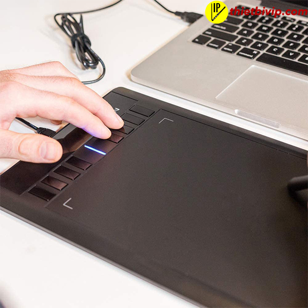 XP-Pen Star03 với 8 nút bấm có thể thiết lập mọi thao tác phím tắt giúp tối thiểu nhu cầu dùng bàn phím ngoài, hỗ trợ các tính năng chỉnh sửa bạn hay xài và các tổ hợp phím khác như Ctrl+S (Save), Ctrl+X (Undo), từ đầu, XP-Pen Star 03 đã được thiết lập các tính năng mặc định: Brush enhance/weaken, zoom-in/out, Undo, hand tool, brush tool, erase, tuy nhiên bạn có thể vào driver của máy để chỉnh lại. Hỗ trợ cả phím tắt như khi cần mở nhanh một chương trình hay website nào đó.