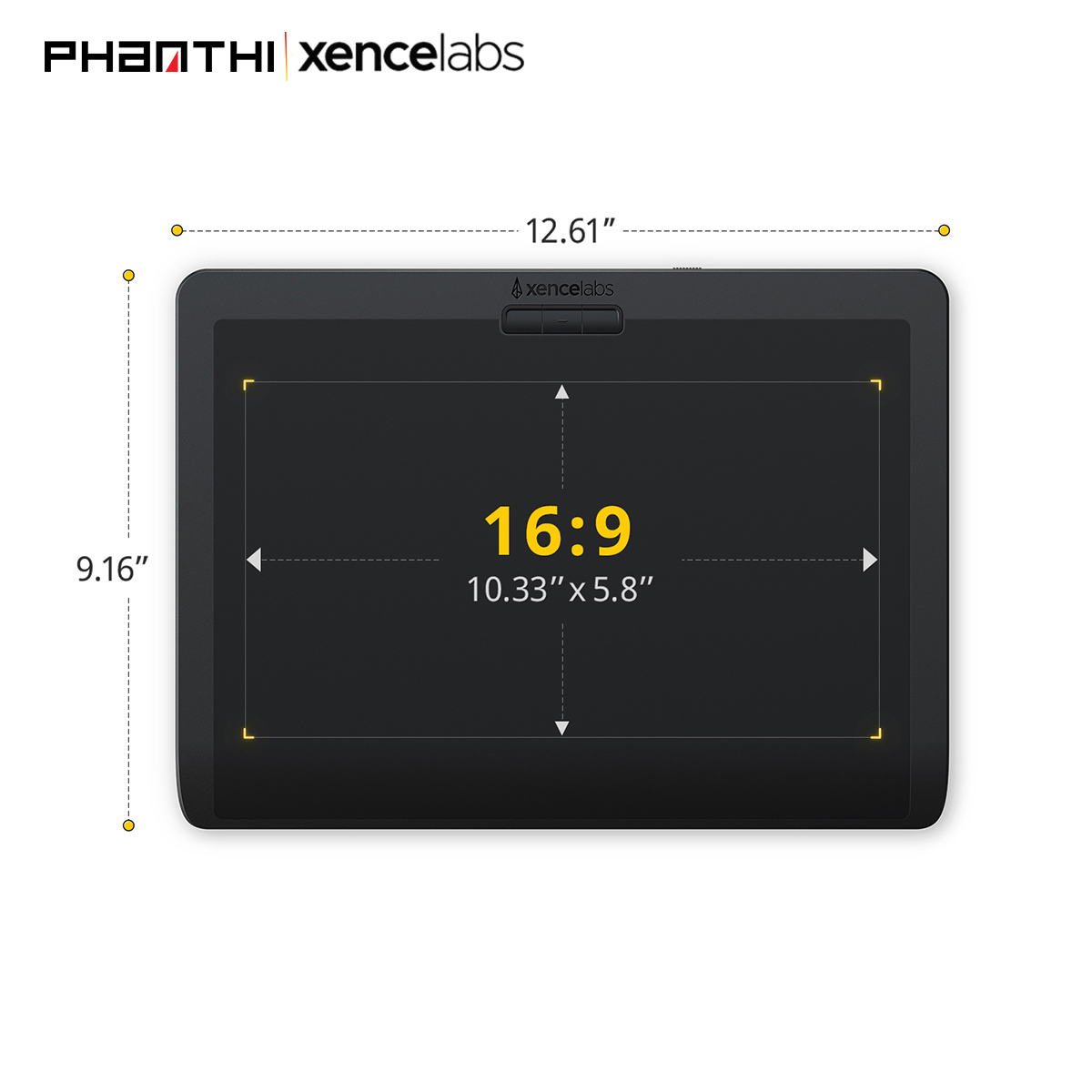Vùng hoạt động bảng vẽ Xencelabs có tỉ lệ 16:9 giống tỉ lệ màn hình thông dụng, theo cách tự nhiên nét vẽ của bạn sẽ không bị biến dạng như với hầu hết các mẫu bảng vẽ khác trên thị trường.
