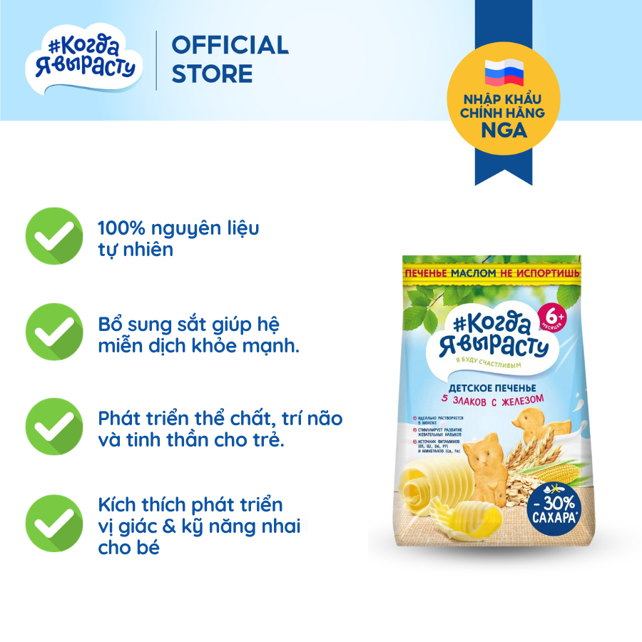 BÁNH QUY ĂN DẶM BỔ SUNG SẮT, CANXI CHO BÉ TỪ 6M-120G/GÓI Date: 2025 THÔNG TIN SẢN PHẨM - Thương hiệu: When I Grow Up - Xuất xứ sản phẩm: Nhập khẩu Nga, sản xuất