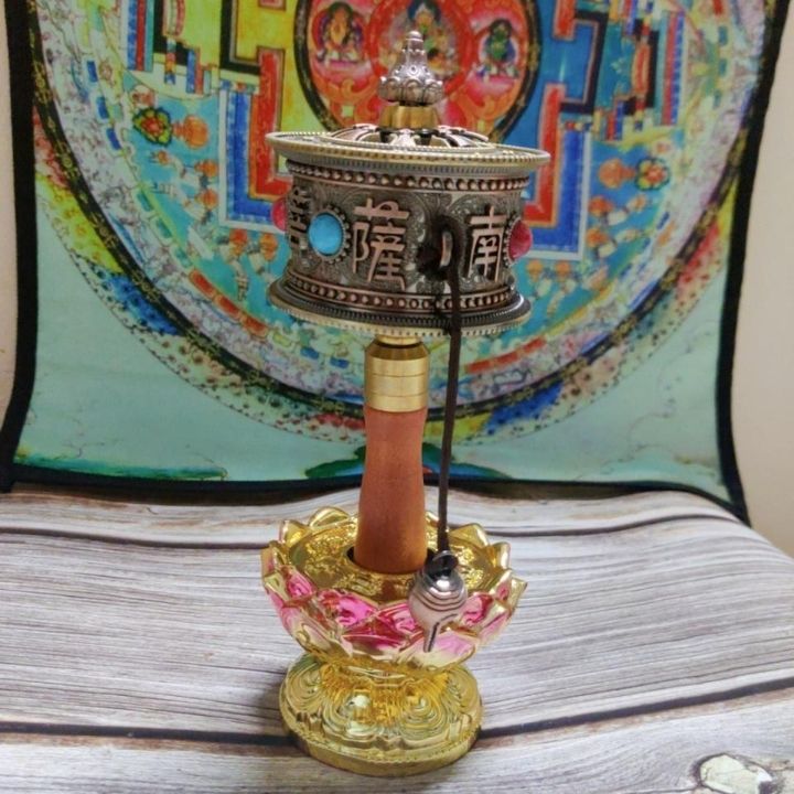 Bánh xe cầu nguyện Kinh luân tay xoay và đế sen - Cầu bình an, may mắn