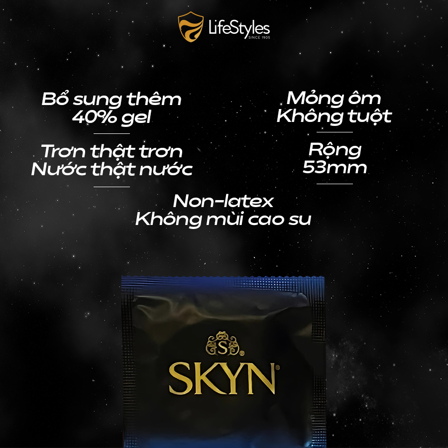 - Những “sa mạc khô” không còn lo vì đã có SKYN LUB siêu nhiều gel nha ^^ LifeStyles là thương hiệu sức khỏe tình dục số một của Úc. Chúng tôi cũng là thương hiệu bao cao su hoạt động lâu nhất thế giới - Tự hào làm bao cao su từ năm 1905. Tất cả sản phẩm LifeStyles được sản xuất đạt tiêu chuẩn ISO 4074 – 2015. Sản phẩm được kiểm tra tĩnh điện 100% trước khi bán ra thị trường.