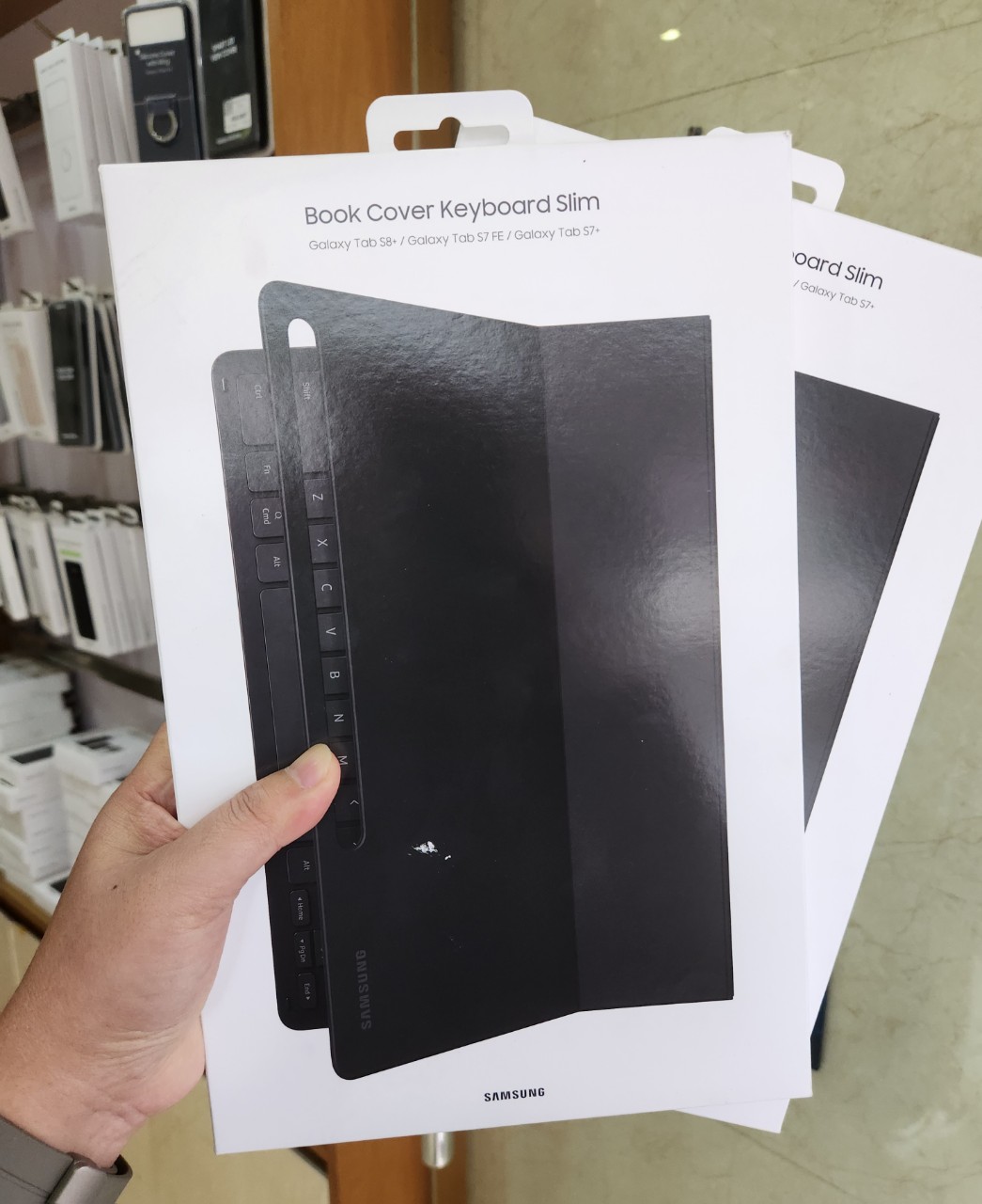 - Bao da kèm phím cho máy tính bảng Galaxy Tab S7+/Tab S7 FE/Tab S8+ Book Cover Keyboard Slim