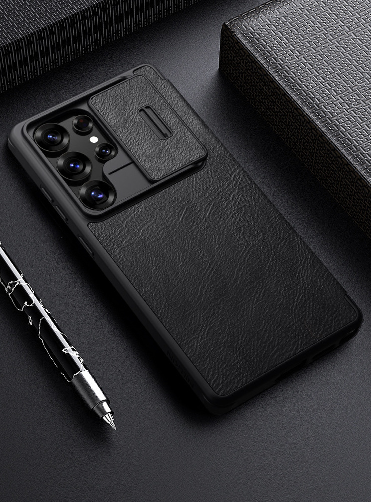 ✨Bao da chống sốc ngăn đựng thẻ card cho Samsung Galaxy S25 Ultra , S25 Plus , S25 hiệu Nillkin Qin Pro - Da PU cao cấp, Viền TPU, sang trong, nắp trượt bảo vệ camera - Hàng nhập khẩu