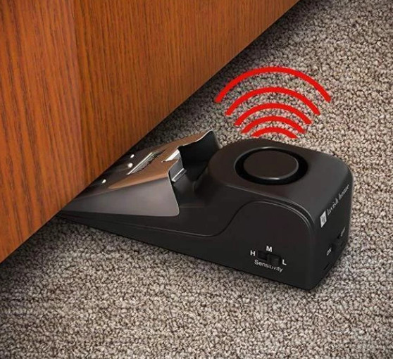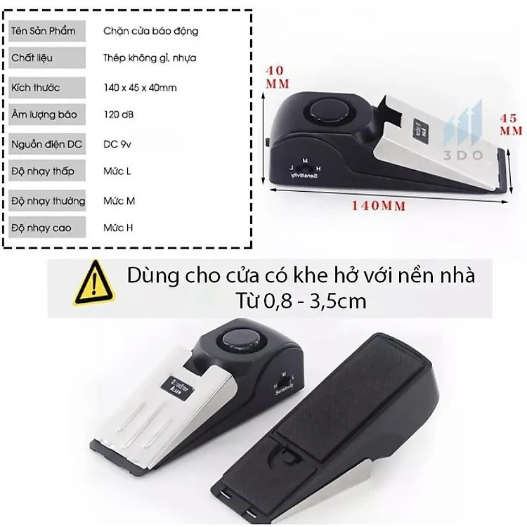 Hiện nay vấn đề trộm cấp hay những kẻ xâm nhập không phép nhất vào ban đêm ngày một nhiều. Nếu bạn là một người hay lo lắng bạn cần có một công cụ để hỗ trợ đề phòng những trường như vậy có thể xảy ra. Thiết bị chận cửa và báo động chống trộm sẽ giúp bạn làm việc đó. Đây là một thiết bị cực kỳ tiện lợi và hữu dụng bạn chỉ việc cho pin vào và đặt làm nêm chận các cửa và đi ngủ, nếu có một sự xâm nhập nào đó qua cửa nêm chận sẽ cản lại và phát ra âm thanh báo động rất lớn làm kẻ xâm nhập hoảng hốt tháo chạy và bạn sẽ tỉnh giấc có đủ tỉnh táo để ứng phó.