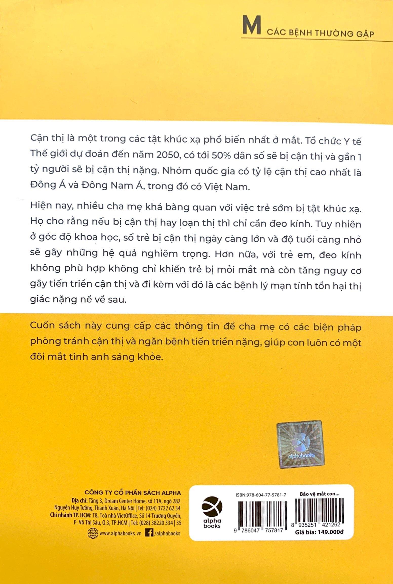 Cuốn sách này cung cấp các thông tin để cha mẹ có các biện pháp phòng tránh cận thị và ngăn bệnh tiến triển nặng, giúp con luôn có một đôi mắt tinh anh sáng khỏe.