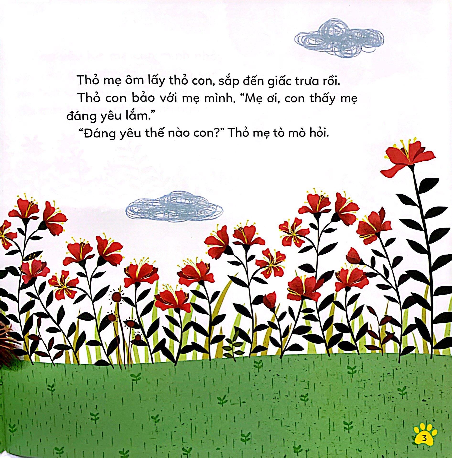 Mua tại TiktokThỏ con rất yêu mẹ, nhất là những khi mẹ vui vẻ nói cười, ôm ấp và yêu thương mình, ngắm nhìn mình từ xa và hát những bài ca dịu êm cho mình. Thế còn trong mắt thỏ mẹ thì sao nhỉ? Có phải khi con ngoan ngoãn và nghe lời thì mẹ mới thấy yêu. Hay dù thỏ con làm gì thì thỏ mẹ cũng luôn thấy con yêu nhất trần đời?
