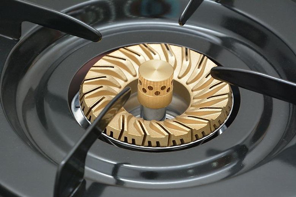 Đầu đốt có vòng lửa xoắn giúp tập trung lửa nhiệt vào bề mặt tiếp xúc giúp thức ăn được nấu chín nhanh hơn.