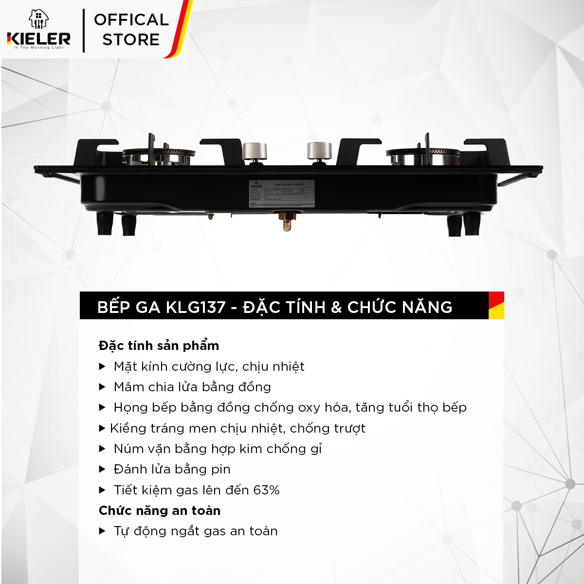 * Mặt kiếng cao cấp chịu lực, chịu nhiệt, thiết kế hoa văn sang trọng; - Thân bếp làm bằng inox chống rỉ sét, cao 60mm; - Núm vặn kiểu Rinnai; - Kiềng thép sơn