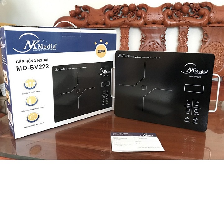 - Đa chức năng nấu nướng Bếp Hồng Ngoại Cảm Ứng NK Media MD-SV222 - Hàng Chính Hãng là một bước tiến trong ngành thiết bị nhà bếp, bởi những công dụng tuyệt vời và sự tiện lợi mà chúng mang lại cho người sử dụng. Bếp hồng ngoại hoạt động dựa vào dòng điện đốt nóng các lõi điện bên trong (cuộn dây điện trở) để tạo ra nhiệt rồi truyền đến mặt bếp, nhiệt làm nóng đáy nồi và nấu chín thức ăn. Nhờ thế, bếp hồng ngoại có thể dùng được cho tất cả các loại nồi và cũng có thể dùng để nướng thức ăn được. Bếp Hồng Ngoại Cảm Ứng NK Media MD-SV222 - Hàng Chính Hãng được tạo thành từ những chất liệu cao cấp nhất, cùng công nghệ hiện đại nhất, thân thiện với người sử dụng sẽ là lựa chọn hoàn hảo cho mọi căn bếp Việt. THIẾT KẾ THÔNG MINH – HIỆN ĐẠI – TRẺ TRUNG Thiết kế chắc chắn, an toàn khi di chuyển Bếp Hồng Ngoại Cảm Ứng NK Media MD-SV222 - Hàng Chính Hãng có kiểu dáng nhỏ gọn nhưng chắc chắn, màu đen sang trọng, bốn góc bo tròn. Đặc biệt, bếp có tay cầm cách nhiệt 2 bên giúp cho việc di chuyển khi bếp còn nóng được an toàn và dễ dàng hơn. Mặt kính siêu bền, chịu lực, chịu nhiệt Bếp Hồng Ngoại Cảm Ứng NK Media MD-SV222 - Hàng Chính Hãng làm bằng kính cường lực, chống trầy xước, chống bám bẩn. Đặc biệt, mặt bếp có khả năng chịu lực và chịu được nhiệt độ lên đến 800 độ C giúp bạn yên tâm nấu nướng. Bảng hiển thị LED cùng núm vặn và phím bấm cảm ứng nhạy bén Bếp điều chỉnh nhiệt độ bằng phím cảm ứng, dễ dàng sử dụng kể cả những người tiếp xúc lần đầu tiên. Các chức năng khác như hẹn giờ, khóa an toàn, hiển thị điện năng… được lựa chọn bằng phím bấm cảm ứng trên mặt bếp. Quạt gió tăng tuổi thọ sản phẩm Quạt gió tốc độ cao được trang bị dưới mặt bếp và bên hông bếp giúp tản nhiệt đều, hạ nhiệt nhanh nhưng không tạt hơi nóng vào người sử dụng. Sản phẩm có tuổi thọ cao, mặt kính bền, linh kiện bền… đều được quạt gió góp phần hỗ trợ. ĐA CHỨC NĂNG NẤU NƯỚNG – ĐÁP ỨNG MỌI NHU CẦU CỦA GIA ĐÌNH Công suất lớn, 5 chế độ nấu linh hoạt Bếp có công suất 2000W cho khả năng nấu nhanh, giúp tiết kiệm tối đa điện năng và thời gian nấu nướng. Sản phẩm phục vụ 5 chế độ nấu tự động bao gồm nướng, chiên, nấu lẩu, nấu súp và nấu nước. Đặc biệt, chức năng nướng trực tiếp mang đến sự tiện lợi tối đa khi có thể làm chín mọi thực phẩm như thịt, cá, hải sản… Dễ dàng sử dụng & vệ sinh Bếp điều chỉnh nhiệt độ bằng núm xoay đơn giản, dễ dàng sử dụng kể cả những người tiếp xúc lần đầu tiên. Lưu ý bạn chỉ có thể điều chỉnh nhiệt độ/công suất nấu cho chế độ nấu lẩu, nướng, chiên còn chế độ nấu súp, đun nước thì bạn không thể chỉnh được. Chế độ hẹn giờ/cài đặt trước tiện lợi Bếp Hồng Ngoại Cảm Ứng NK Media MD-SV222 - Hàng Chính Hãng có chế độ hẹn giờ bật trước 12 giờ và cài đặt tắt trước 4 giờ giúp người dùng tiết kiệm được thời gian trông coi. Hiển thị điện năng tiêu thụ Trong suốt quá trình nấu, chạm phím “Điện năng” 1 lần, màn hình sẽ cho thấy mức điện năng tiêu thụ. Ấn phím “Điện năng” 2 lần, màn hình hiển thị điện áp hiện tại theo vôn. An toàn trong quá trình sử dụng Bếp Hồng Ngoại Cảm Ứng NK Media MD-SV222 - Hàng Chính Hãng trang bị khóa trẻ em an toàn, hạn chế nguy cơ bị bỏng nhiệt. Đèn báo mặt bếp còn nóng tránh cho người dùng các nguy cơ bỏng do tiếp xúc với bề mặt bếp ngay sau khi nấu. Tự động ngắt khi quá nhiệt Bếp được trang bị thiết bị bảo vệ quá nhiệt, nếu nồi chảo quá nóng (vượt mức an toàn), bếp sẽ tự động ngắt nguồn. Bạn chỉ cần để yên và chờ một lúc cho bếp nguội bớt rồi sẽ hoạt động lại bình thường. Không bức xạ nhiệt Sản phẩm làm nóng nhưng không bức xạ nhiệt, bảo đảm an toàn về nhiệt và điện cho người sử dụng. Sử dụng được cho tất cả các loại nồi Bếp không kén chọn loại nồi chuyên dụng: nồi inox, nhôm, sứ, thủy tinh… giúp tận dụng tối đa các loại nồi sẵn có, tiết kiệm tiền bạc và không gian lưu trữ cho nhà bếp. Thông số kỹ thuật
