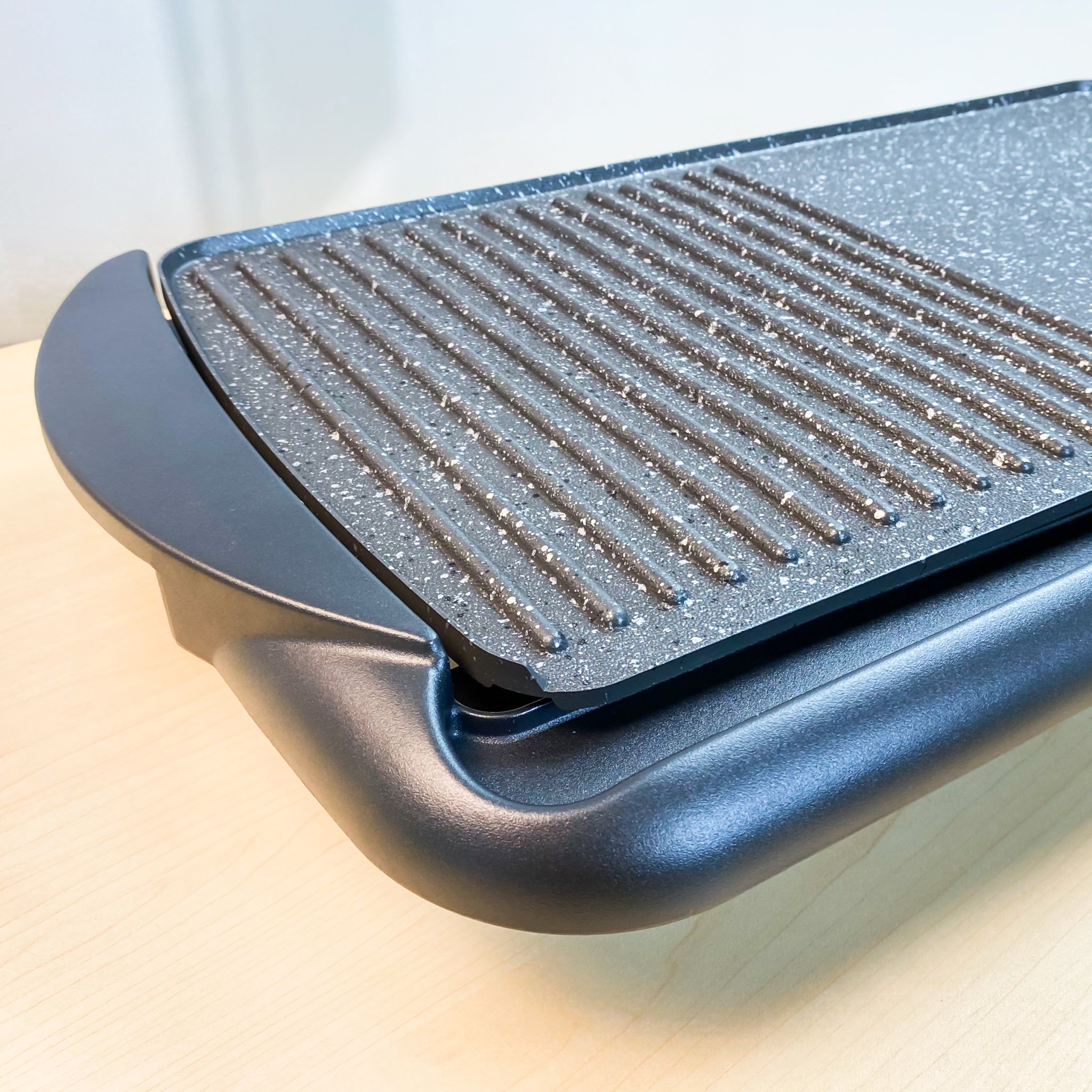 Viền mặt trước và mặt sau được làm bằng thép không gỉ, hai bên tay cầm được làm bằng nhựa chống nóng hiệu quả, đảm bảo an toàn khi sử dụng. Vỉ nướng được phủ lớp chống dính chất lượng cao nhập khẩu từ Nhật Bản, không có chứa chất độc hại PFOA, tiết kiệm thời gian khi chùi rửa.