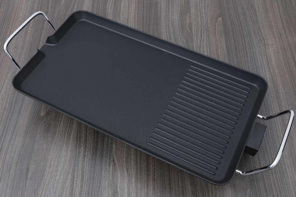 • Tay cầm cách nhiệt Tay cầm 2 bên bằng  cứng chắc được bọc nhựa cách nhiệt tránh bỏng, giúp việc di chuyển an toàn hơn ngay cả khi bếp vẫn còn nóng. Xung quanh mặt nướng là các khe nhỏ để mỡ thừa chảy xuống, hạn chế tối đa việc sinh ra khói trong quá trình nướng, thân thiện với môi trường.