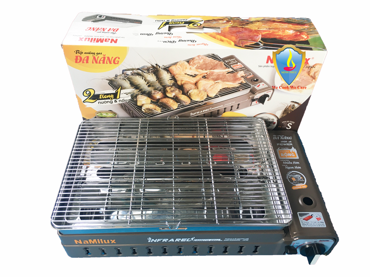 Bếp nướng gas đa năng Namilux GM2020PS mẫu mới cao cấp, màu xám nâu, nướng NGON HƠN NƯỚNG ĐIỆN, TIỆN HƠN NƯỚNG THAN. Đây là dòng bếp nướng gas chuyên nghiệp với bề mặt diện