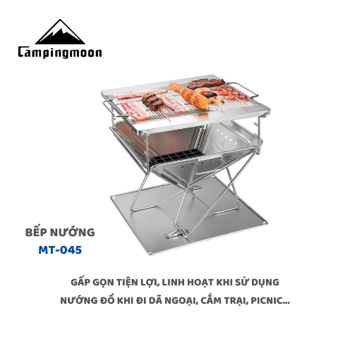 MÔ TẢ SẢN PHẨM BẾP NƯỚNG THAN HOA GẤP GỌN CHO 5-8 NGƯỜI CAMPINGMOON MT-3 * THÔNG TIN SẢN PHẨM: - Thương hiệu: Campingmoon - Mã sản phẩm: MT-3 - Chất liệu: stainless steel, iron