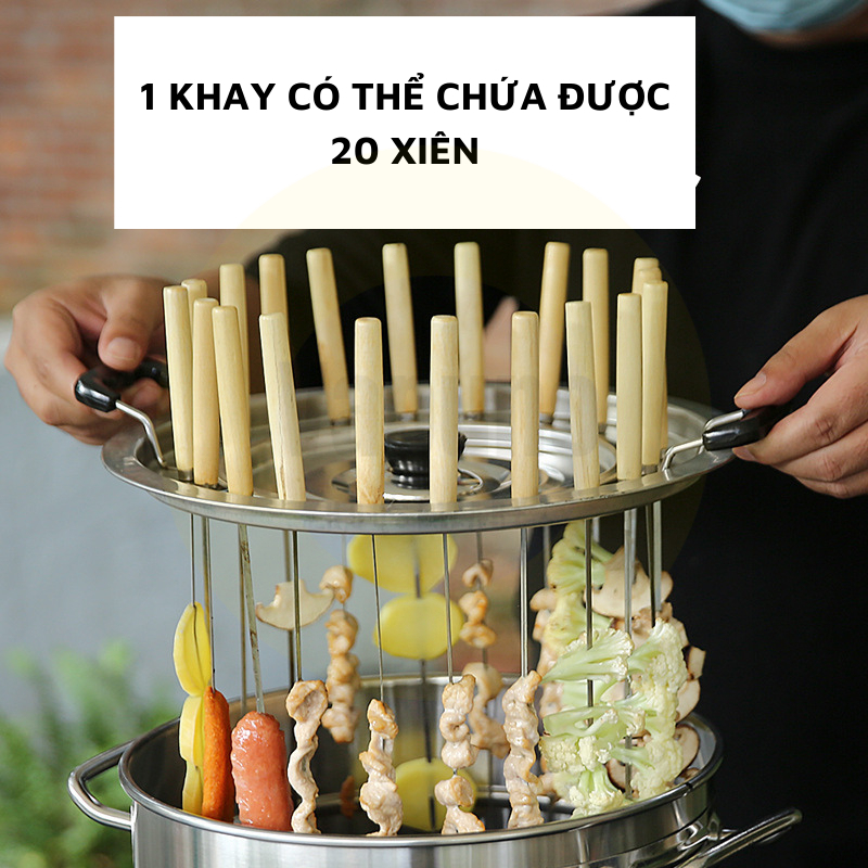 1. THÔNG TIN SẢN PHẨM - Kích thước sử dụng: 30x30x36cm - Số xiên thịt nướng cùng lúc: 20 - Chất liệu: Thép không gỉ 2. ƯU ĐIỂM: - Hạn chế