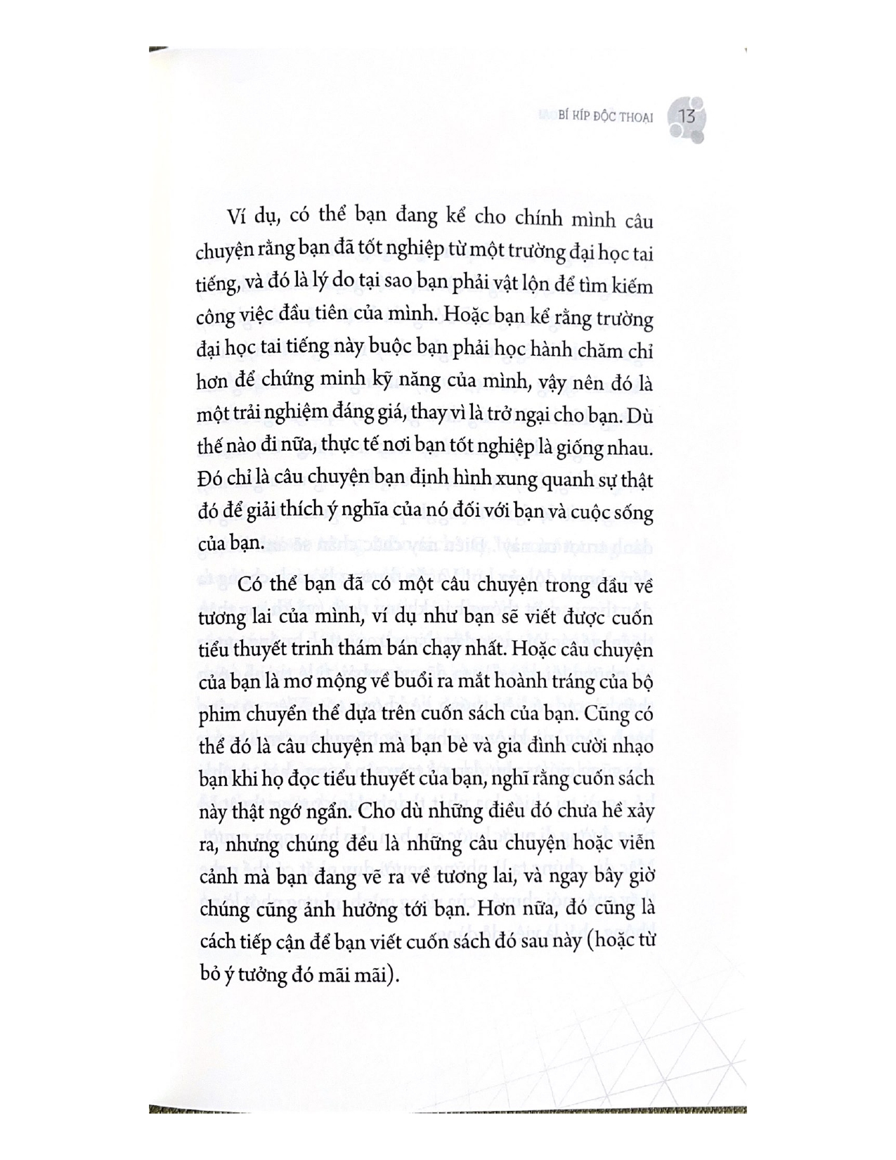 Bí Kíp Độc Thoại-Vanlangbooks I.Giới thiệu sách Bạn muốn đạt được thành công, hài lòng hơn với bản thân và có được cuộc sống trọn vẹn? Nếu vậy, đừng để những suy nghĩ tiêu cực